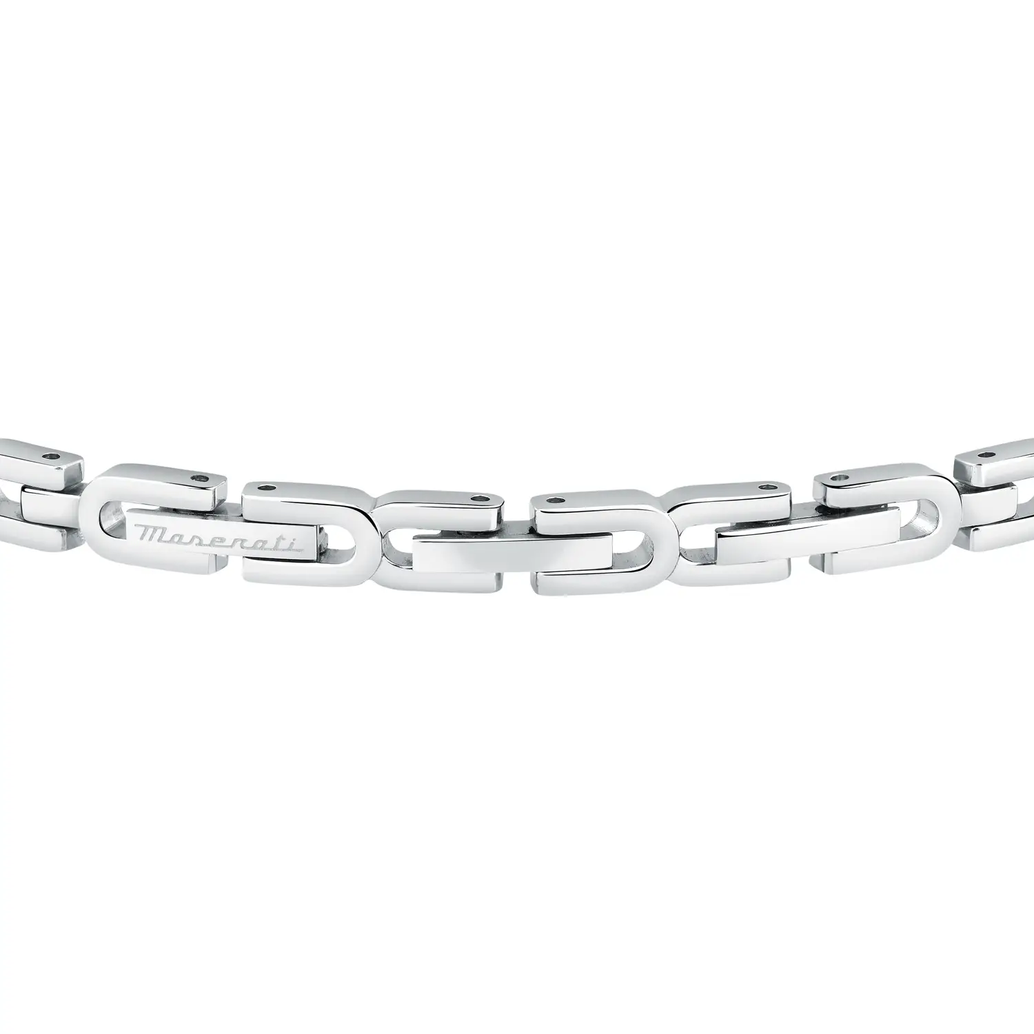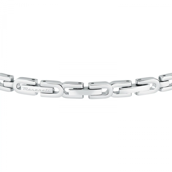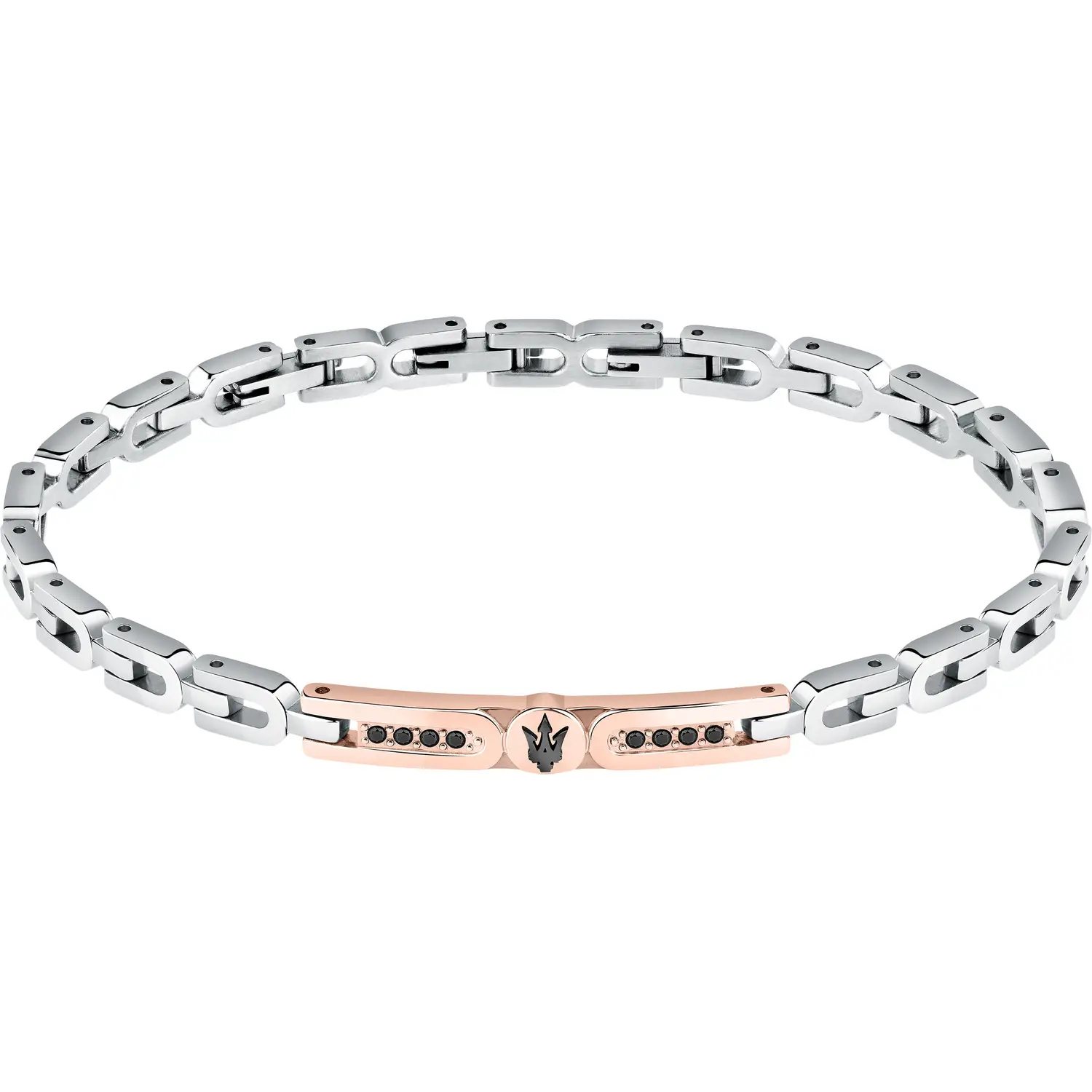 Bracciale Maserati in acciaio con dettagli rose gold e cristalli neri.