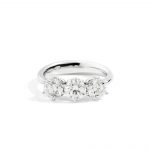 Anello trilogy a sei punte, oro bianco 18 kt e diamanti taglio brillante colore F, purezza VS, caratura 0,48 ct, misura 13.